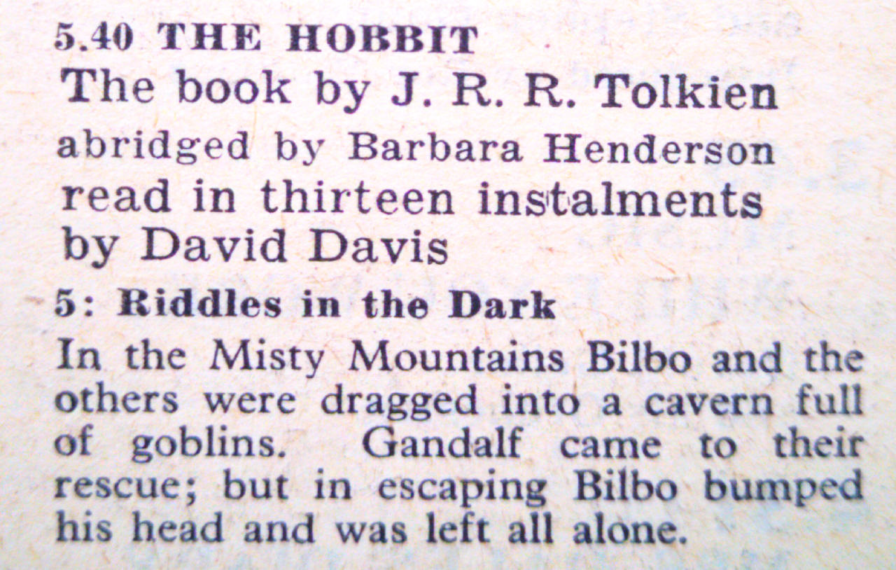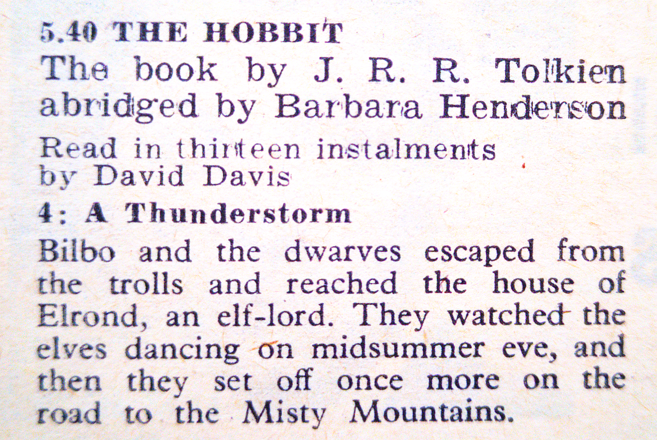 Children’s Hour was a recreational series for younger listeners as distinct from it’s educational series like For the Schools. In 1961 they produced a 13 episode serial abridged by Barbara Henderson and read by David Davis.