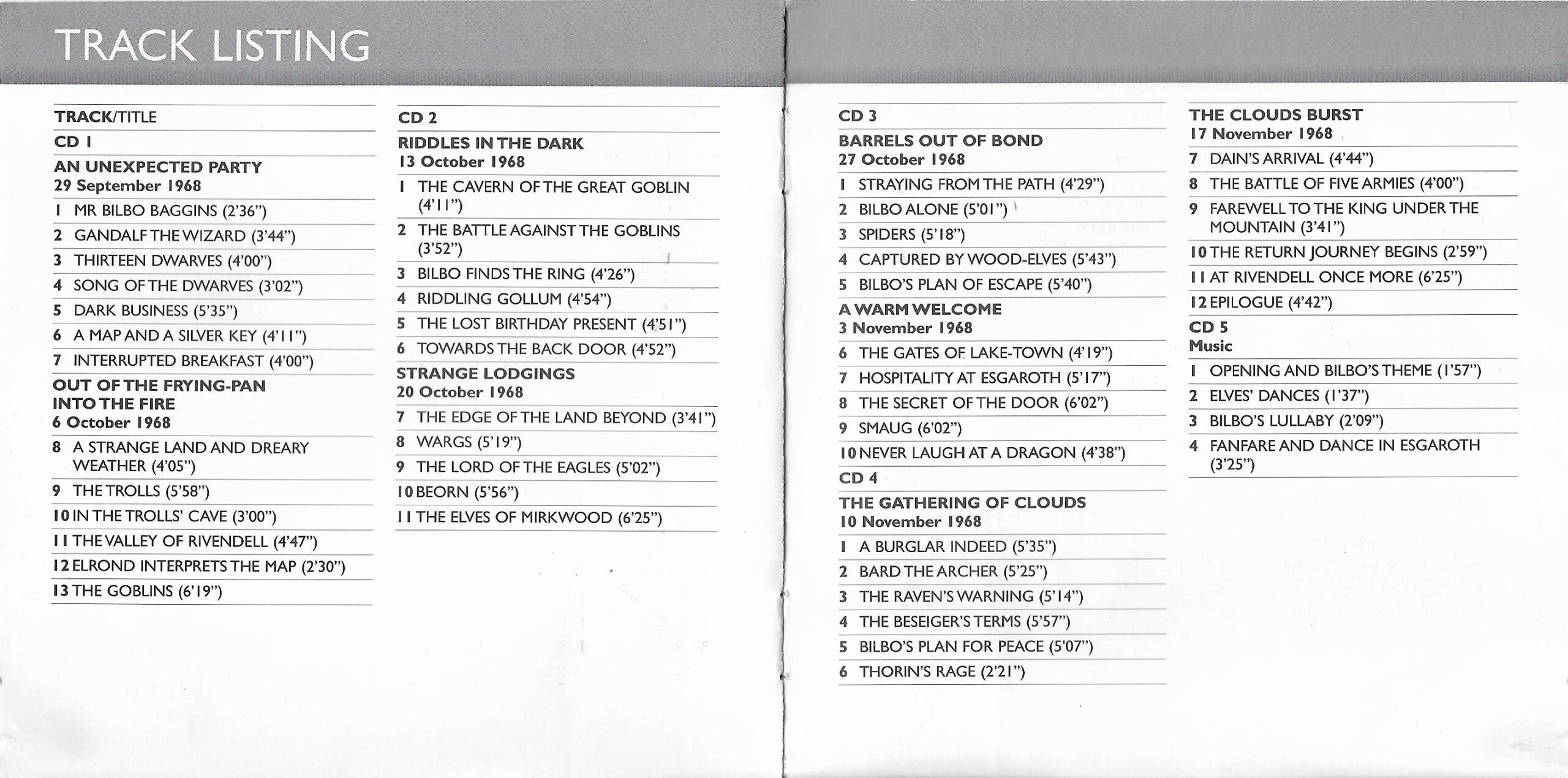 | 3 | 1968.10.13 | 1968.10.15 | 1991.12.26 | Riddles in the Dark |