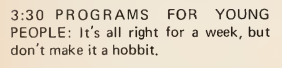 The October 1968 folio featured reflections by Michell Harding, illustrated by Ron Cobb, on The Hobbit which was to feature from Oct 1st as one of the segments alongside songs, news for kids, and other readings in the Programs for Young People afternoon show.
