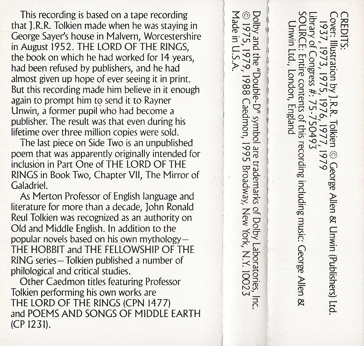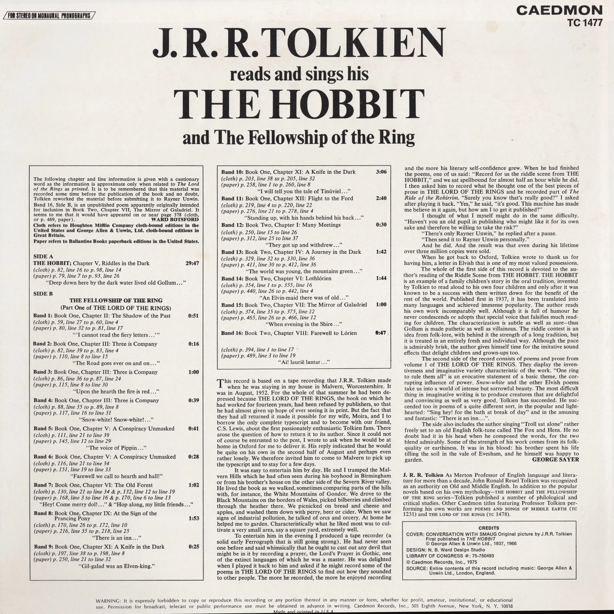 1975 J.R.R. Tolkien Reads and Sings His The Hobbit and The Fellowship of the Ring