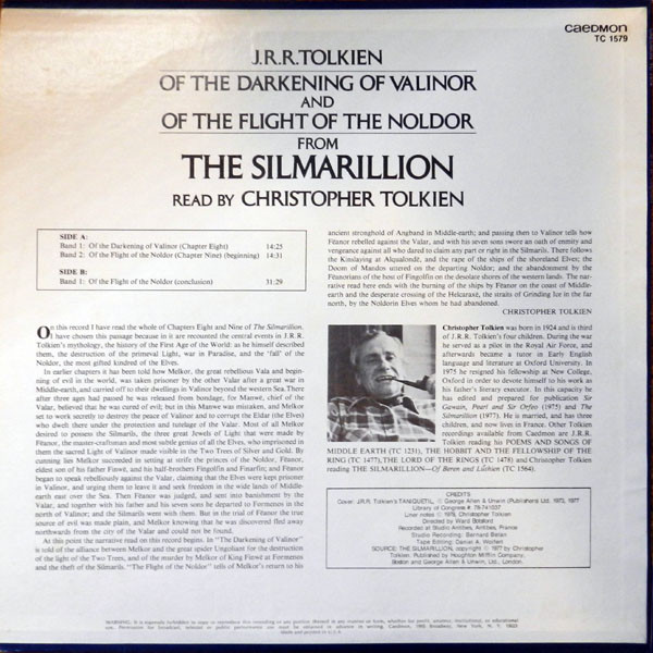 After the success of the 1977 The Silmarillion: Of Beren and Lúthien recording, Christopher Tolkien was back in the studio again, recording more extracts from The Silmarillion. It was recorded once again under the direction of Ward Botsford, the same producer who handled the professor’s Malvern tapes and the 1977 Beren and Lúthien session.