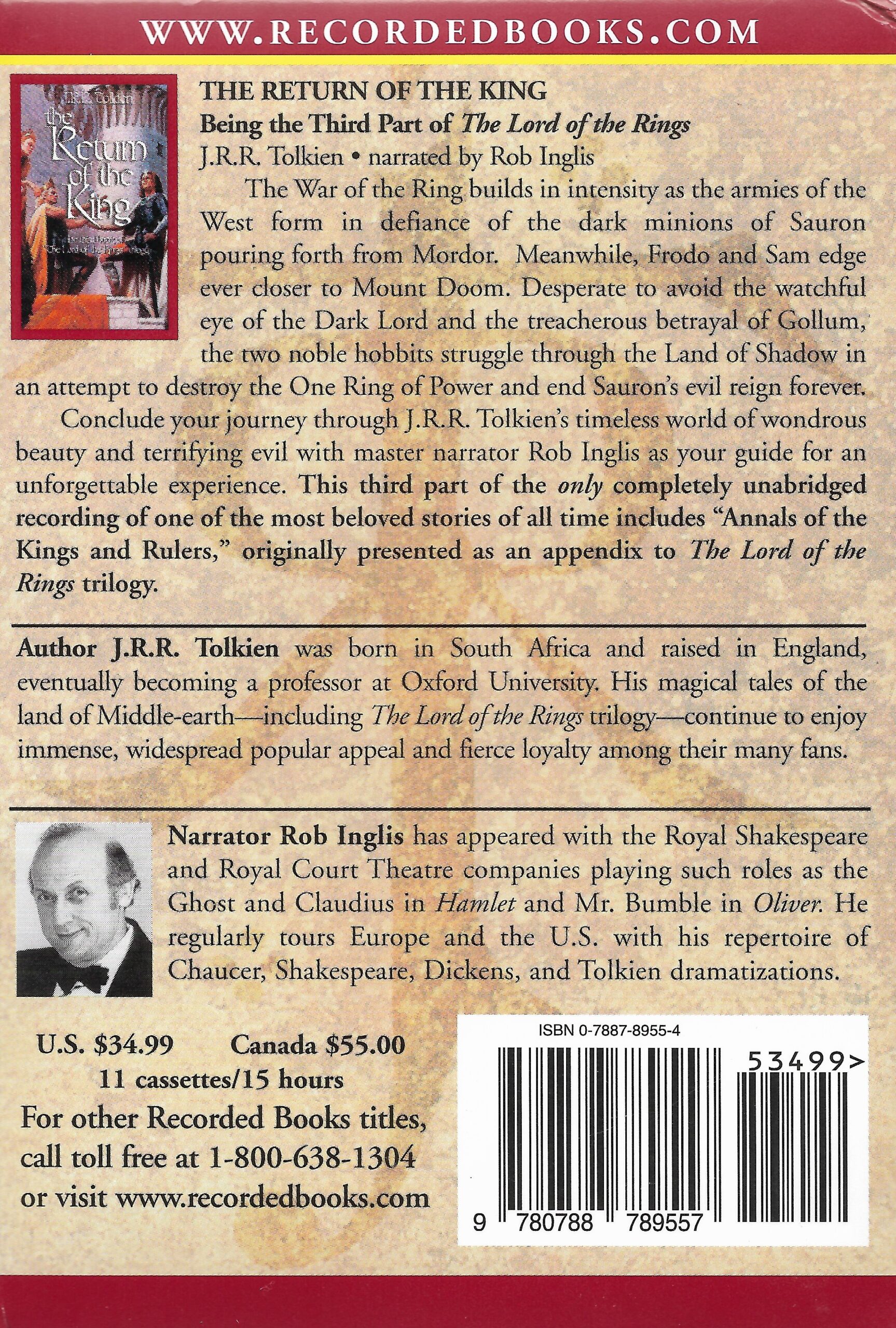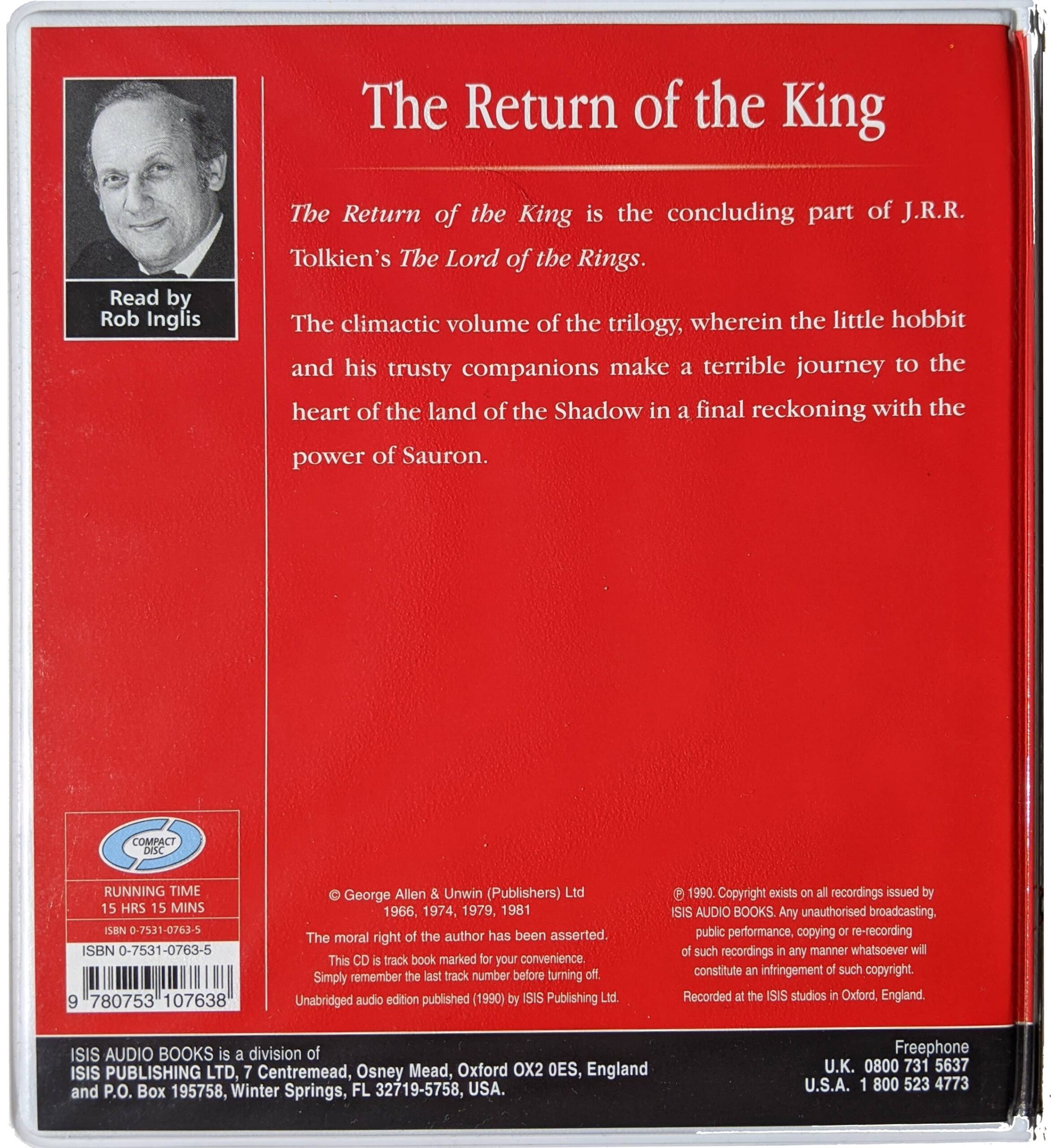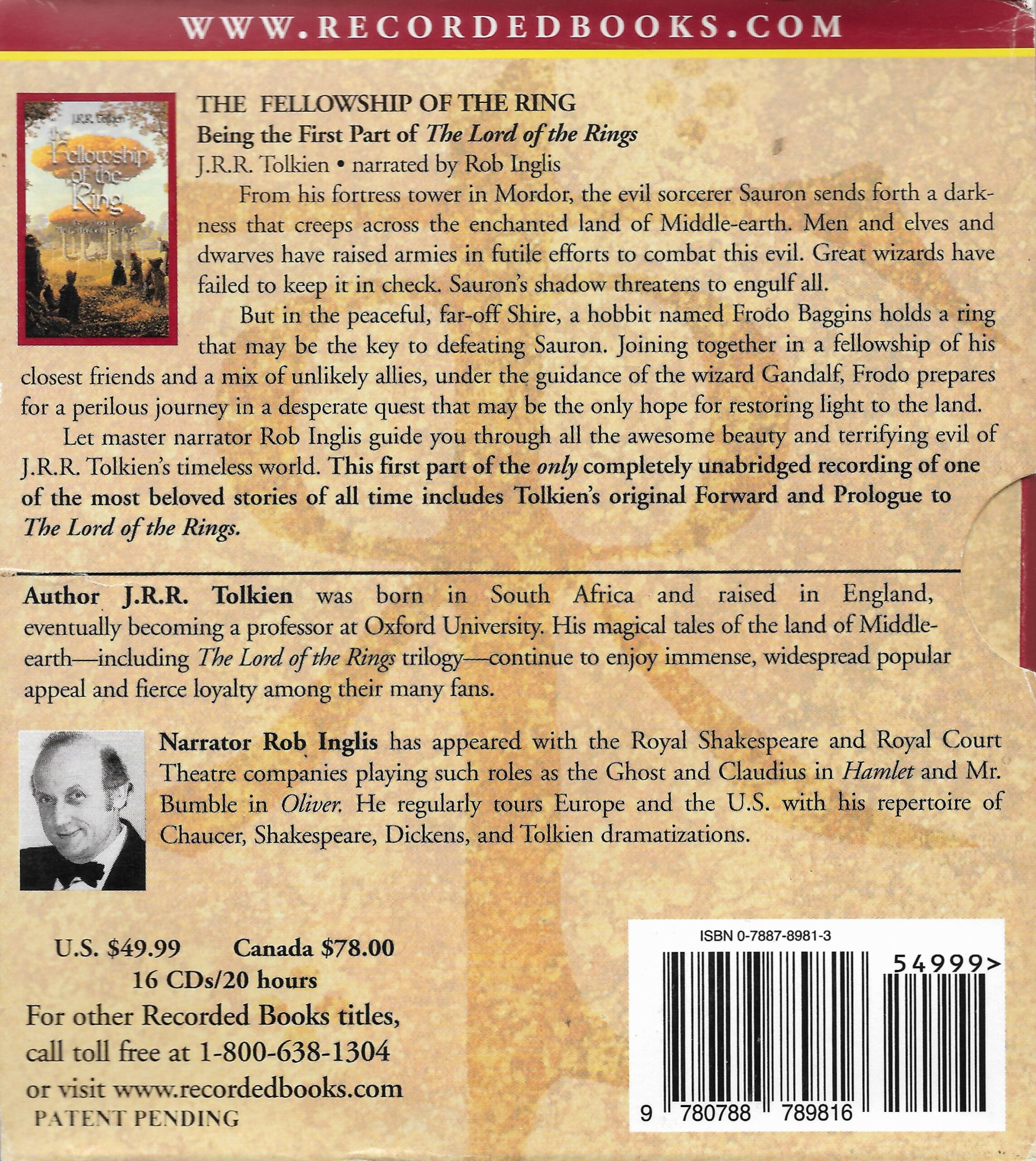 Rob Inglis was chosen to narrate The Lord of the Rings and The Hobbit due to his previous work performing J.R.R. Tolkien’s material. Inglis was noticed by the production company, Recorded Books, through his one-man stage dramatisations of both The Hobbit and The Lord of the Rings in the 1970s and 1980s.
