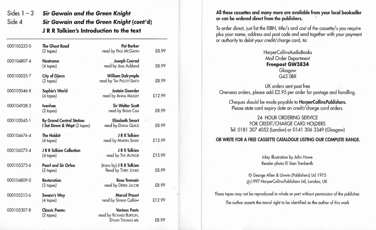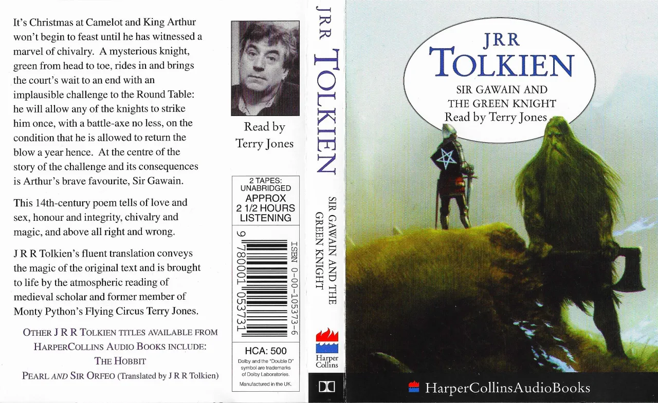 While most famous as a member of Monty Python, Terry Jones was also a serious medieval scholar and author, making him an ideal voice for this particular text. Whilst usually marketed just as Sir Gawain and the Green Knight, it is usually packaged alongside two other medieval poems also translated by Tolkien: Pearl and Sir Orfeo.