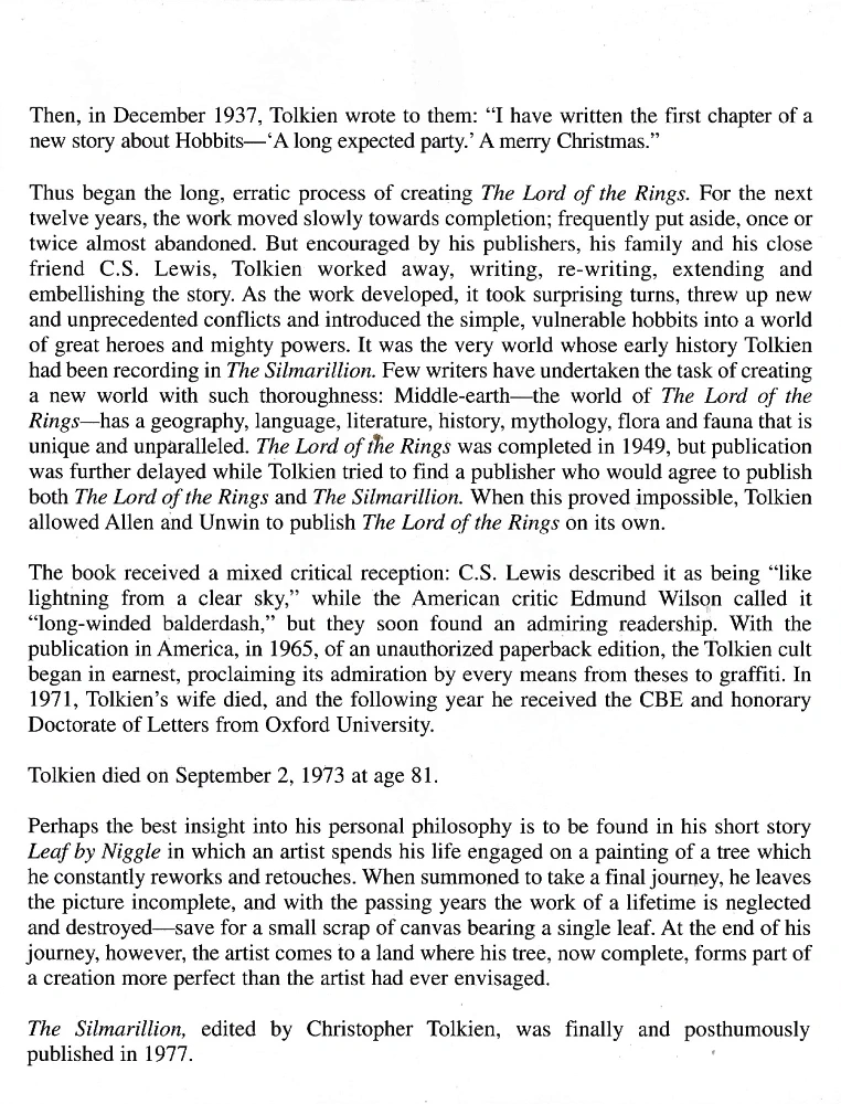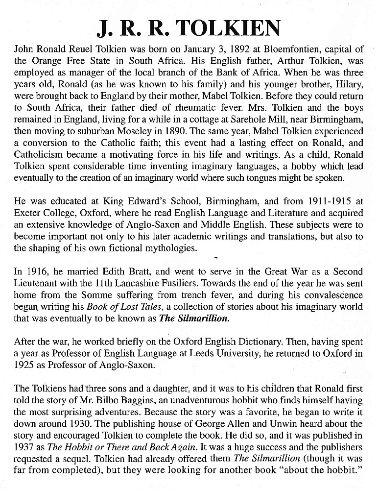 The release of this audiobook was part of the renewed interest in Tolkien’s works leading up to the millennium and the production of the film trilogy. While highly praised, Shaw was given no notes on pronunciation so there are some errors and minor inconsistencies.