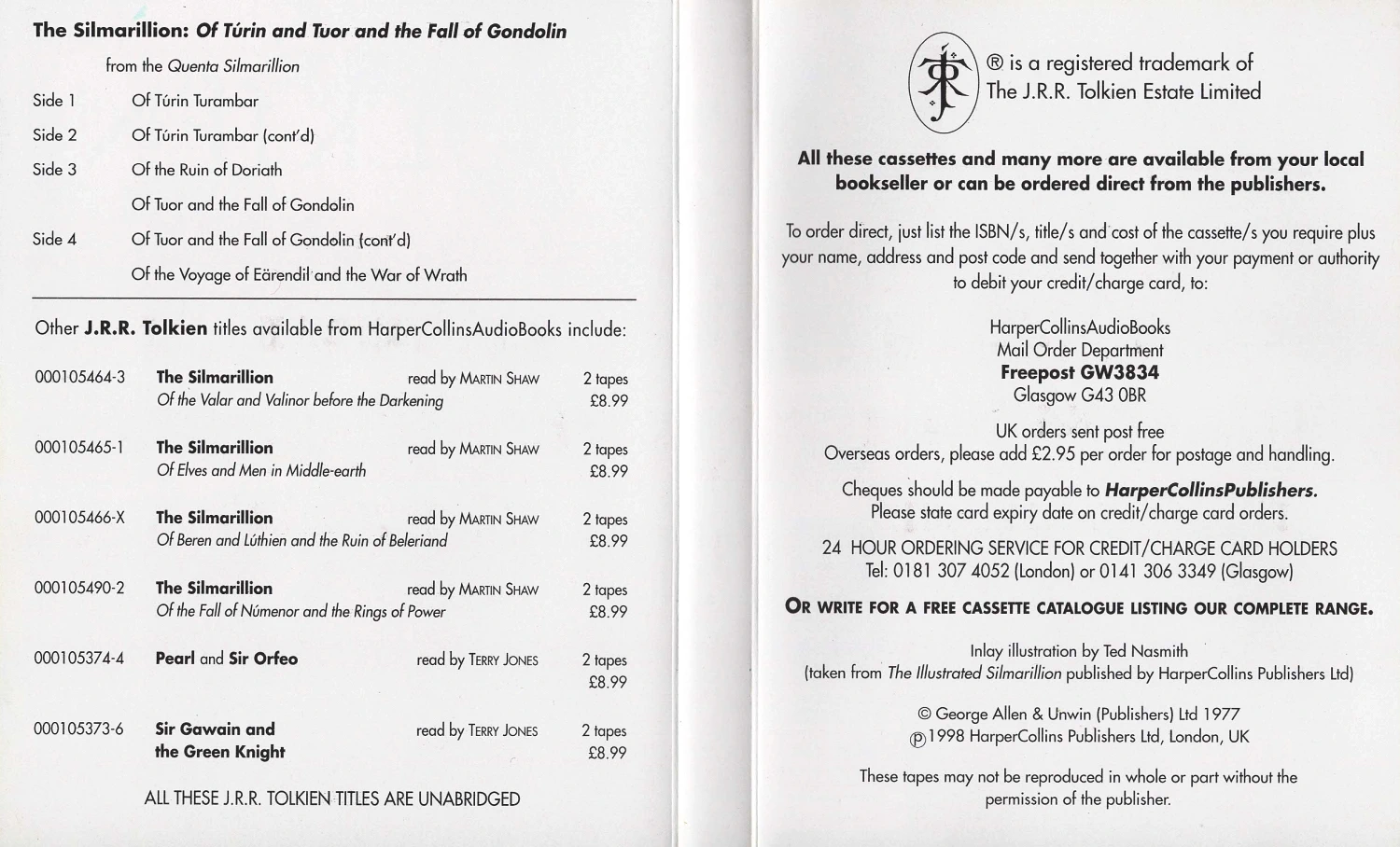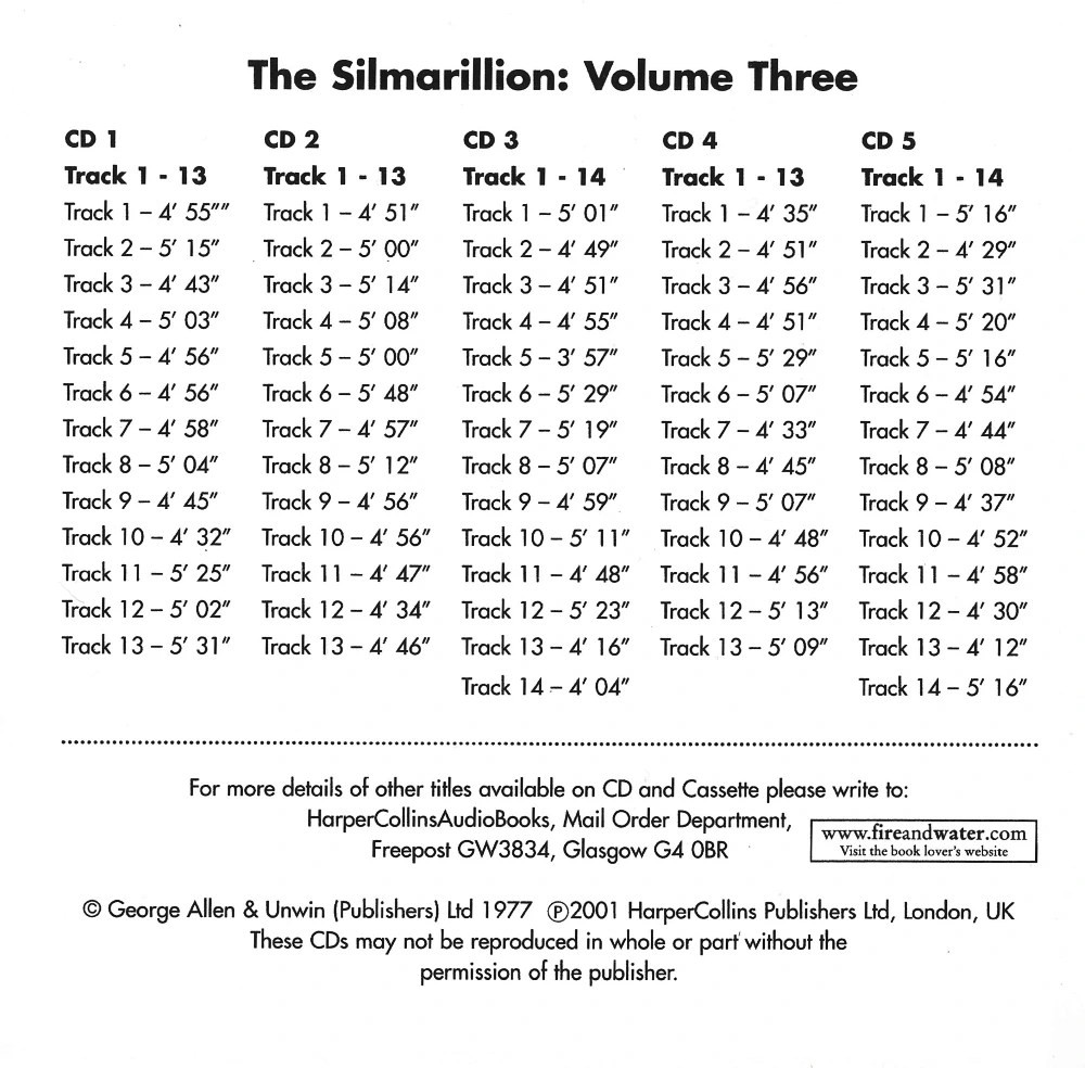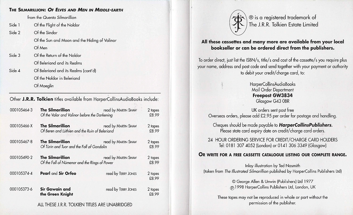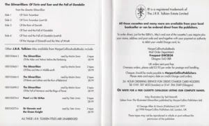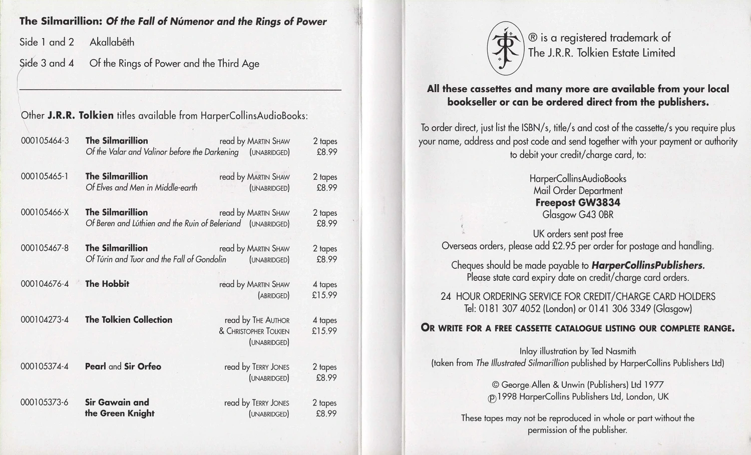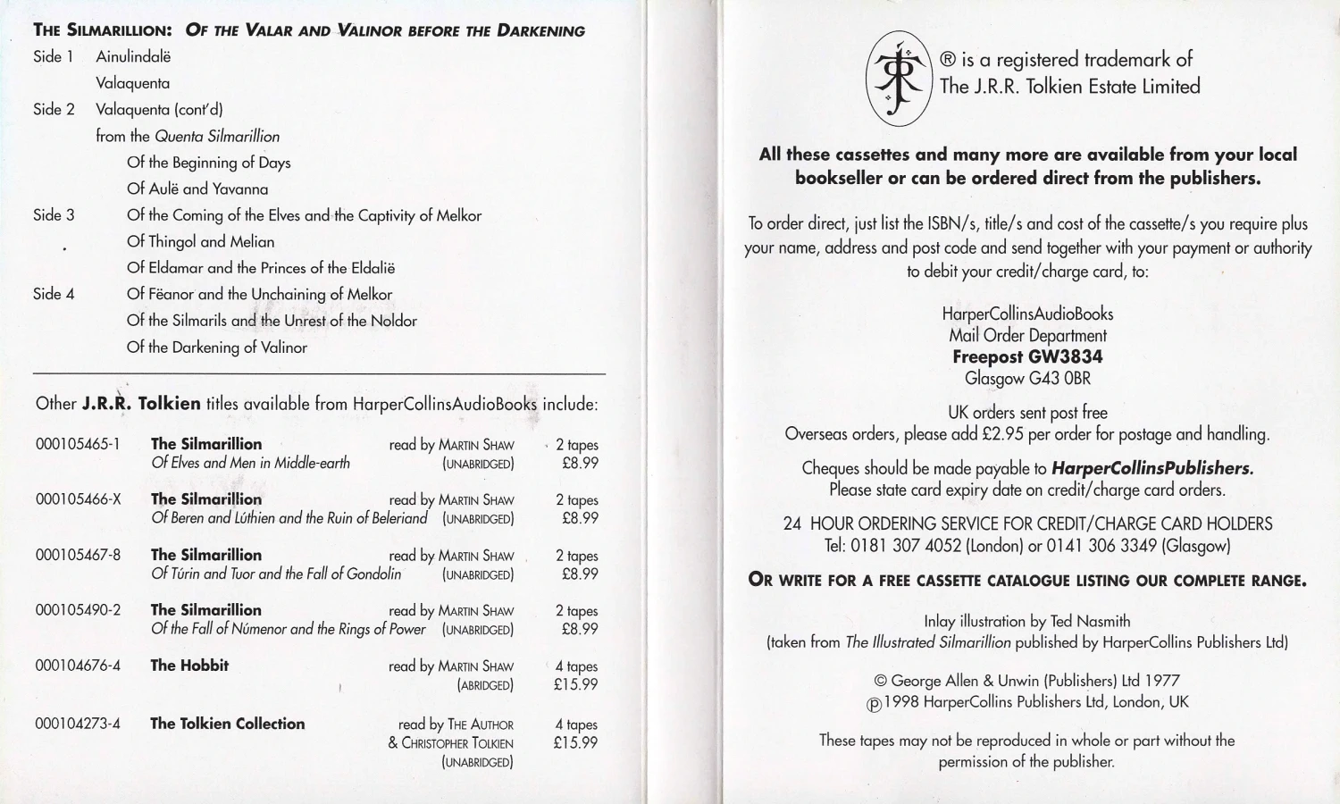 The 1998 recording of The Silmarillion by Martin Shaw was a landmark production that served as the primary English audio version of the text for 25 years. The production was a collaboration between HarperCollins (UK) and Random House Audio/BDD Audio (US). It was first released as a multi-volume set of 12 cassettes that included a brochure and a map of Beleriand and also as a 13 CD box set.