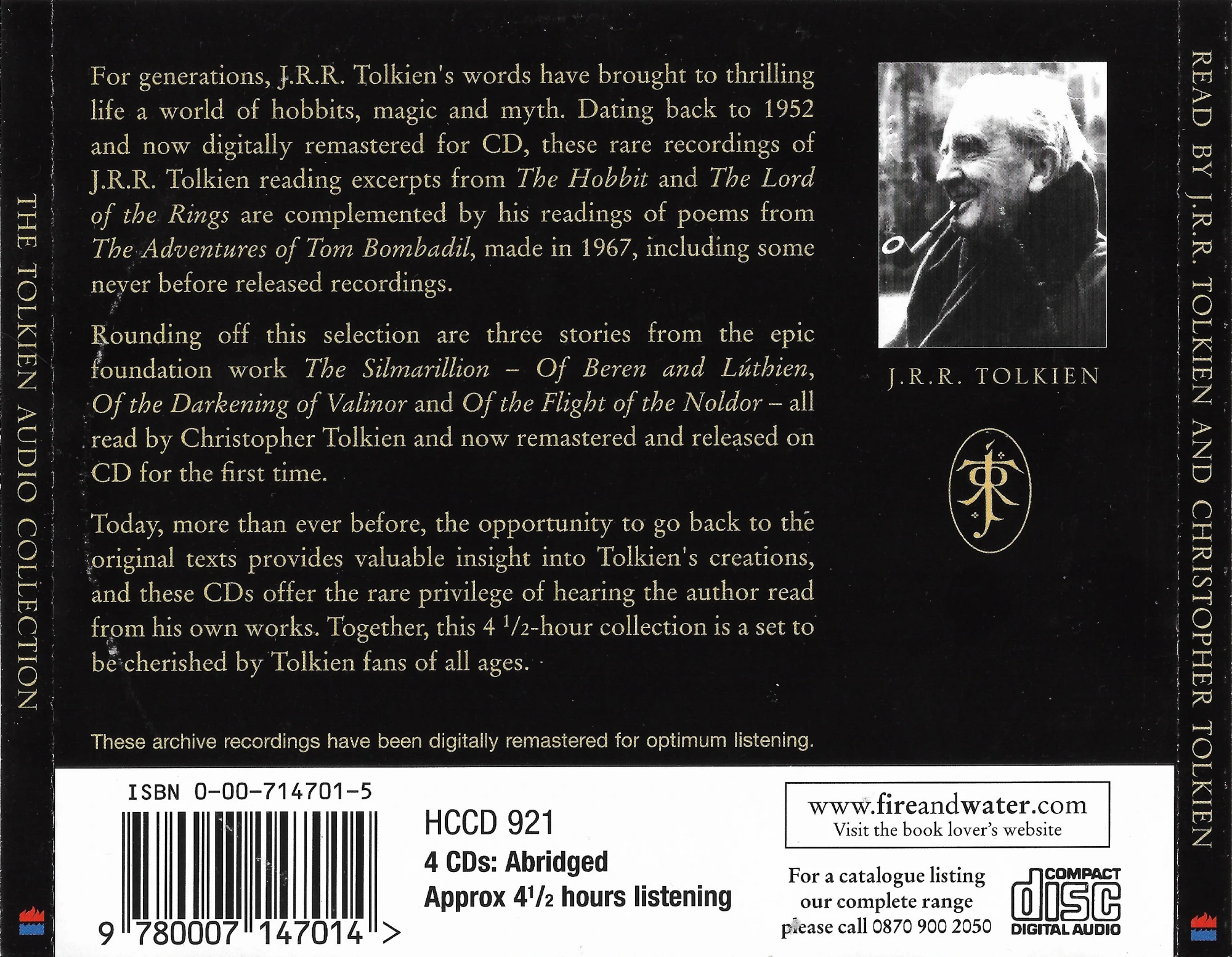 HarperCollins (having acquired the rights to the Caedmon Tolkien archives) undertook a significant remastering project to clean up the 1952 Malvern recordings’ tape hiss and the pops of the 1970s master tapes – ie all of the material previously released separately and then together in 1977 JRR Tolkien Soundbook / Collection.