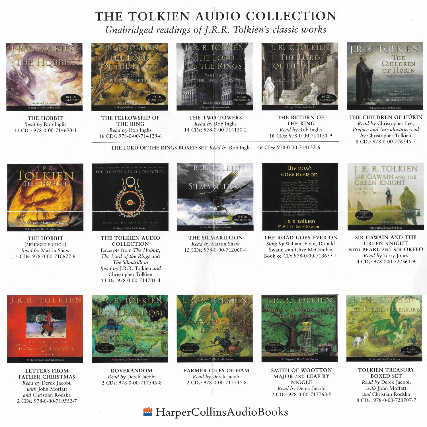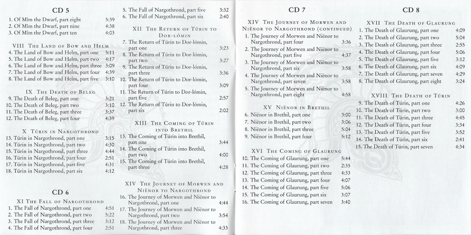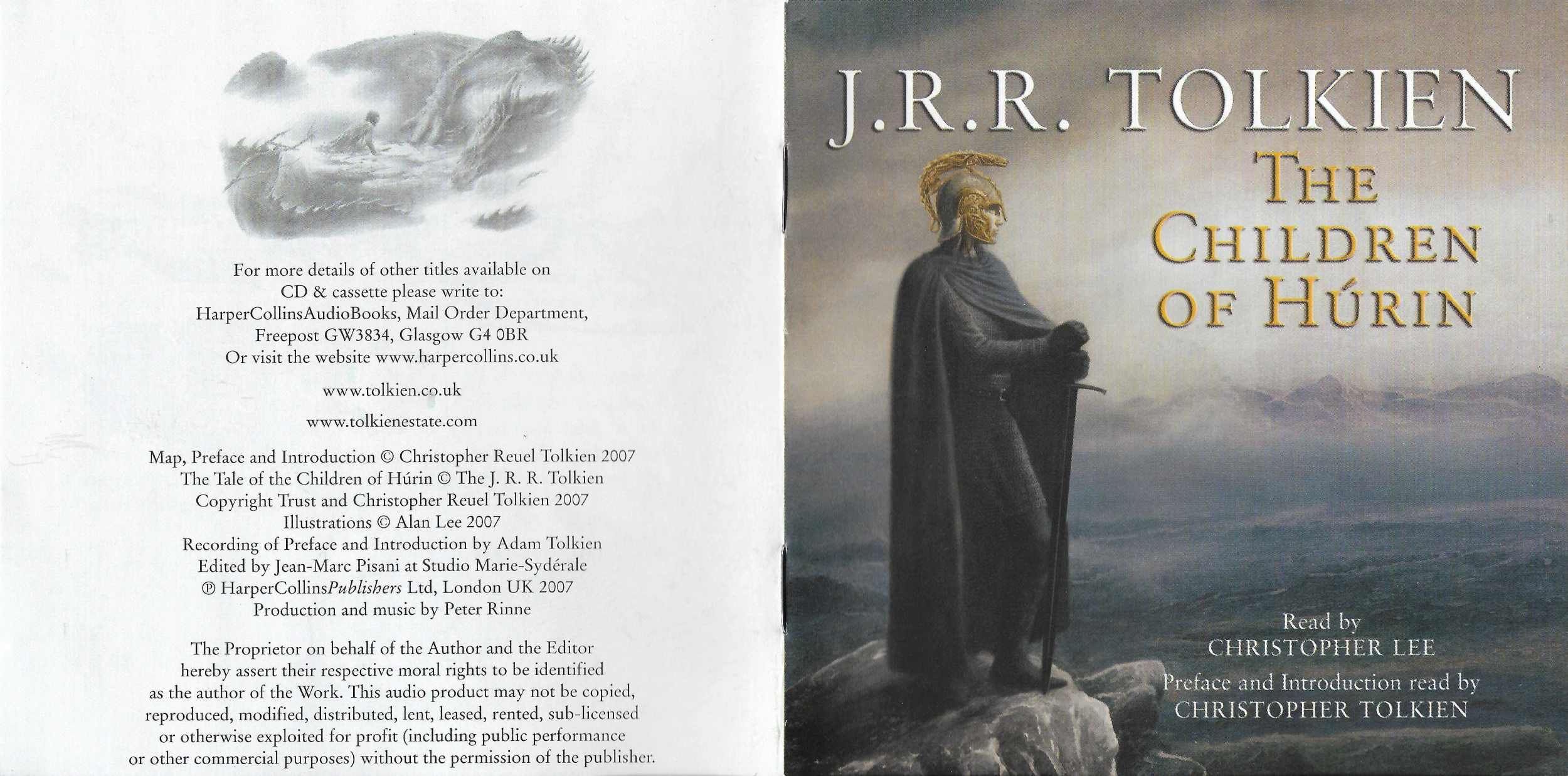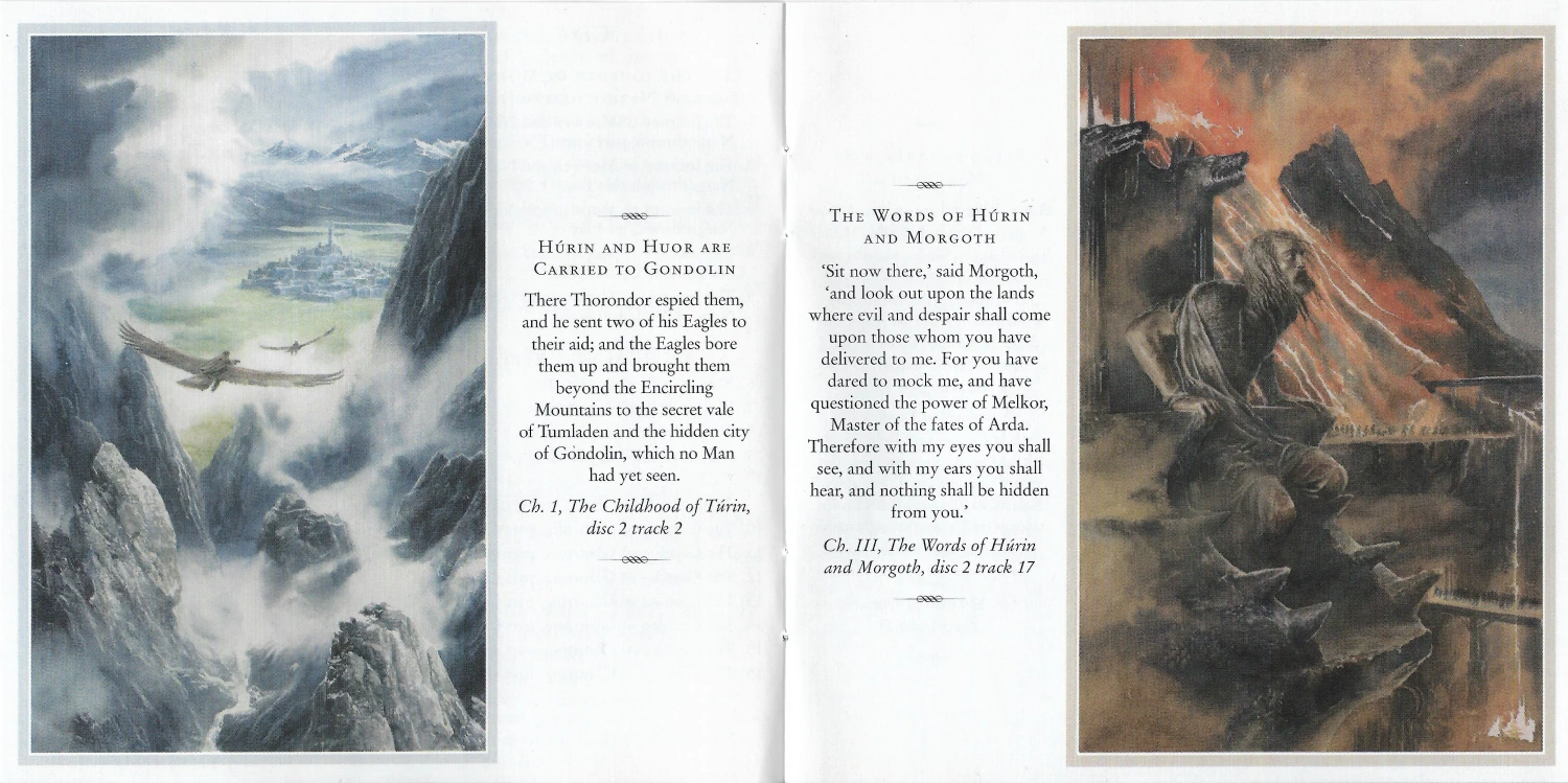 The Preface and Introduction are read by Christopher Tolkien while the text is read by Lee. This recording took only 5 days of studio time. The 8 CD release includes a booklet which has Alan Lee’s drawings from the book and a map.