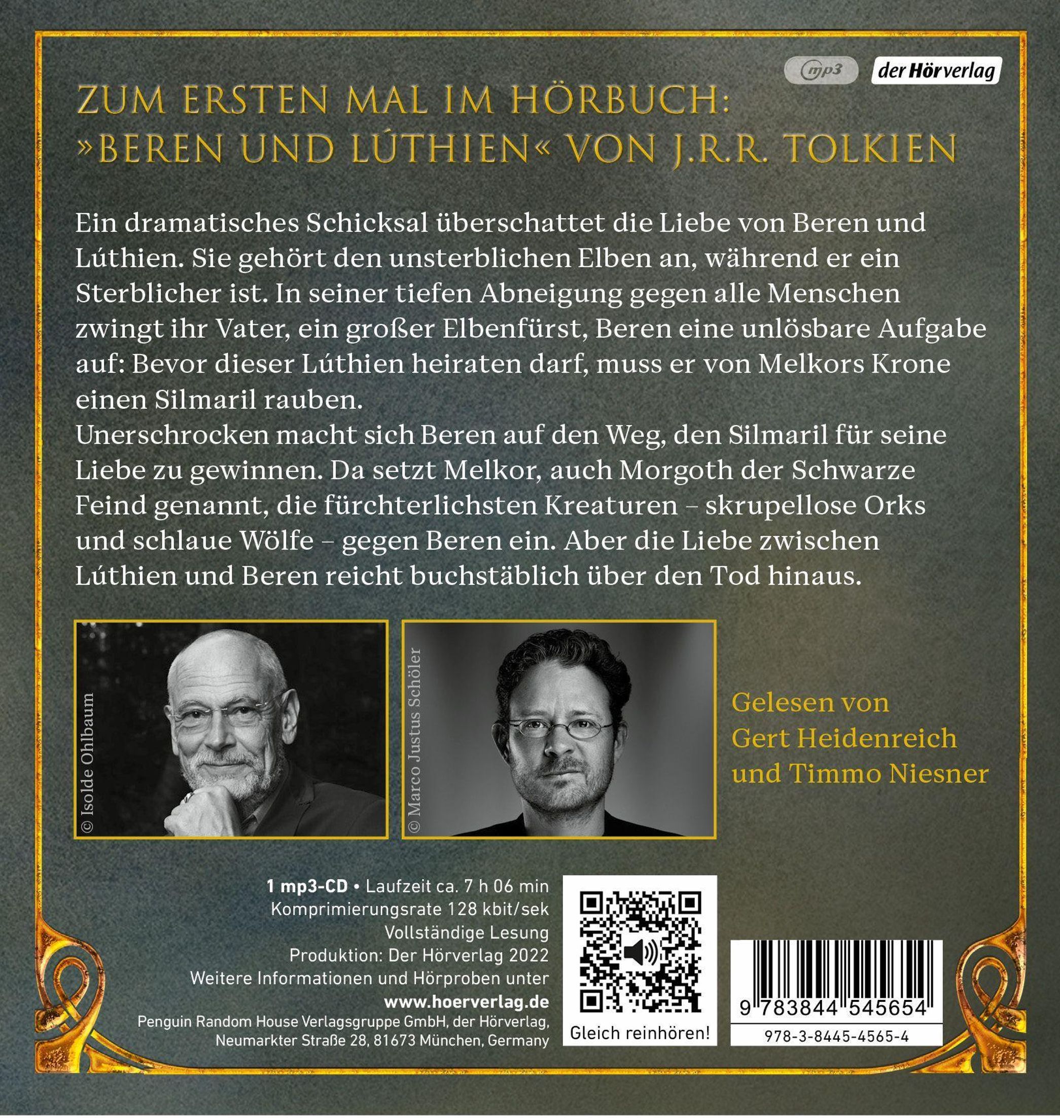 Gert Heidenreich, born in 1944 in Eberswalde, lives near Munich as a freelance writer and speaker. His work includes novels, plays, essays, and volumes of poetry, as well as translations of English and American dramas. He has narrated numerous Tolkien publications including Die zwei Türme (The Two Towers), Die Rückkehr des Königs (The Return of the King), Der Hobbit (The Hobbit), Nachrichten aus Mittelerde (Unfinished Tales), Der Fall von Gondolin (The Fall of Gondolin), Die Kinder Húrins (The Children of Húrin) and Der Untergang von Númenor (The Fall of Númenor)