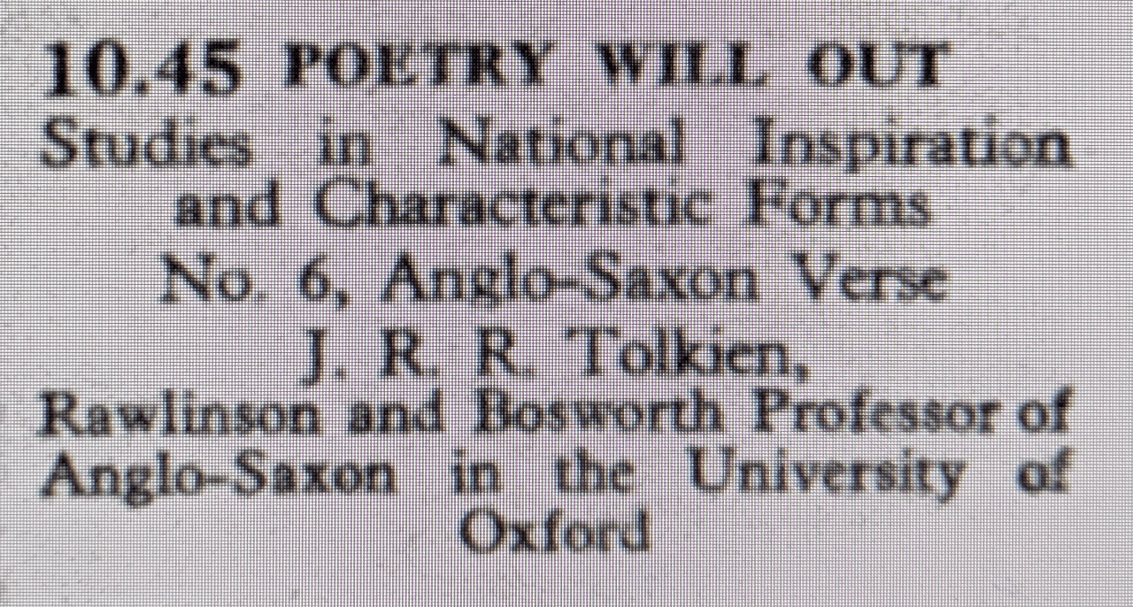Wed 29th Sep 1954, 22:30 Talk by J.R.R. Tolkien